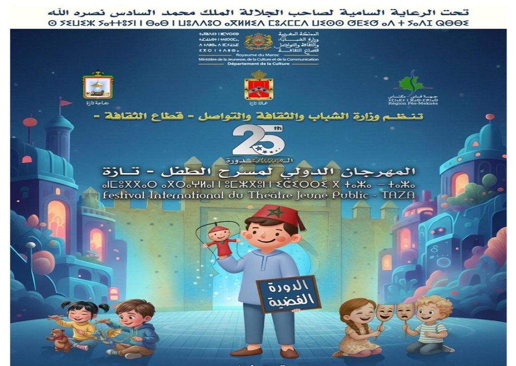 تنظم وزارة الشباب والثقافة والتواصل -قطاع الثقافة- الدورة الخامسة والعشرين للمهرجان الدولي لمسرح الطفل بمدينة تازة، وذلك خلال الفترة الممتدة من 27 إلى 30 أبريل 2026. ويأتي تنظيم هذه التظاهرة الكبرى بشراكة مع عمالة إقليم تازة، وجماعة تازة، ومجلس جهة فاس-مكناس، والمجلس الإقليمي لتازة، وبمساهمة فعالة من عدد من الشركاء والفرق المسرحية الوطنية والدولية، لترسيخ مكانة المدينة كوجهة ثقافية بارزة تعتني بإبداعات الناشئة.