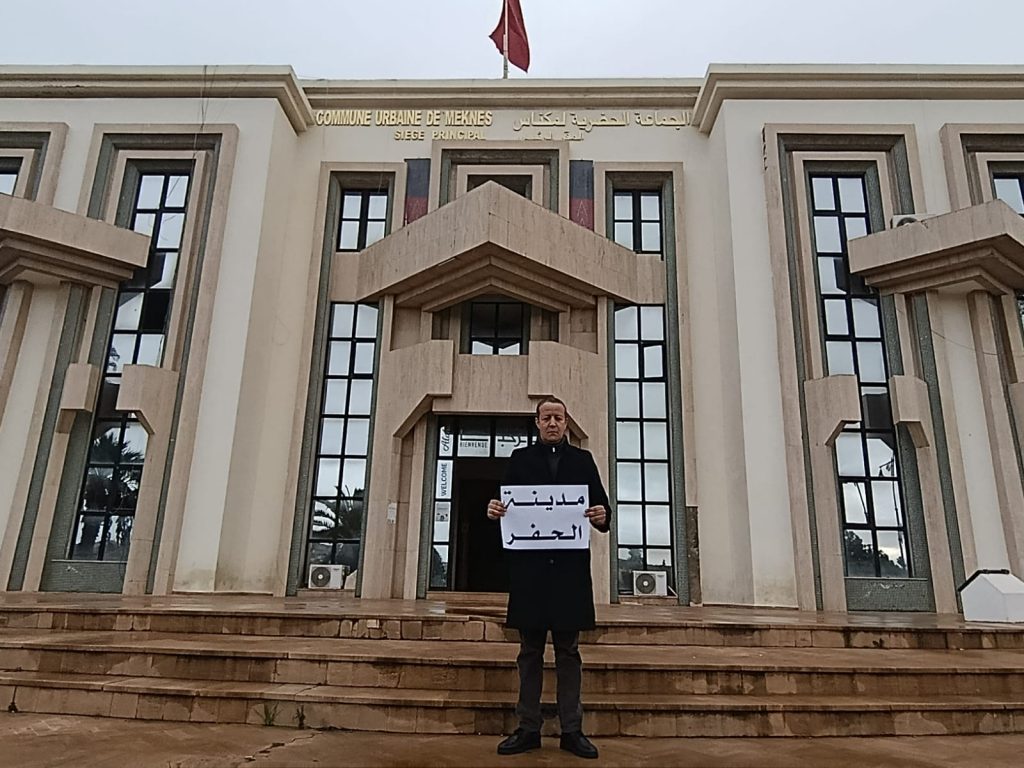 مستشار جماعي بمكناس يحتج داخل مقر المجلس بسبب تردي أوضاع المدينة