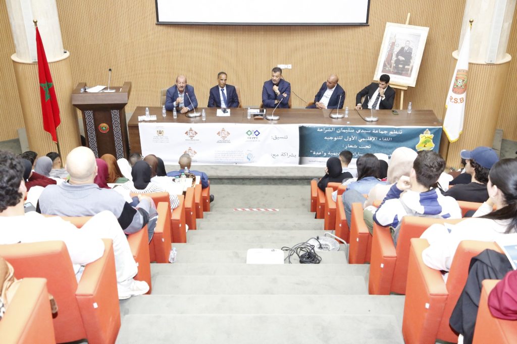 احتضنت القاعة الكبرى للأكاديمية الرياضية لنادي النهضة البركانية فعاليات اللقاء الأول للتوجيه، المنظم من طرف جماعة سيدي سليمان الشراعة بشراكة استراتيجية مع المركز الأفرومتوسطي للتفكير والدراسات القانونية والسوسيواقتصادية، والمدرسة الوطنية للعلوم التطبيقية بوجدة، وبتنسيق مع المديرية الإقليمية للتربية الوطنية والتعليم الأولي، والمدرسة الوطنية للرقمنة والذكاء الاصطناعي ببركان، ومكتب التكوين المهني وإنعاش الشغل، والمدرسة الوطنية للتجارة والتسيير بوجدة، وذلك تحت شعار ملهم: “التوجيه…. نحو مسارات أكاديمية واعدة”.