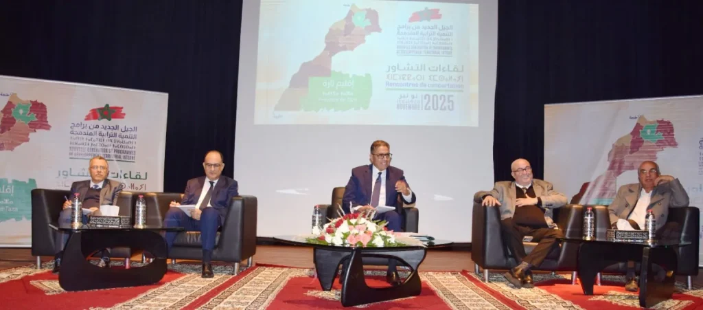 ترأس رشيد بنشيخي عامل إقليم تازة يوم الاثنين 17 نونبر 2025 على الساعة العاشرة صباحا بمسرح الطفل بتازة العليا، مرفوقا ونواب ومستشارو الإقليم في البرلمان، ورجال السلطة المحلية، ورؤساء مجالس الجماعات الترابية، ورؤساء المصالح اللاممركزة للدولة، وممثلو المؤسسات العمومية والغرف المهنية والفاعلين الاقتصاديين، ومختلف مكونات المجتمع المدني، وممثلو المنابر الإعلامية، أشغال فعاليات هذا اللقاء التشاوري الموسع حول إطلاق وإعداد الجيل الجديد من برامج التنمية الترابية المندمجة.