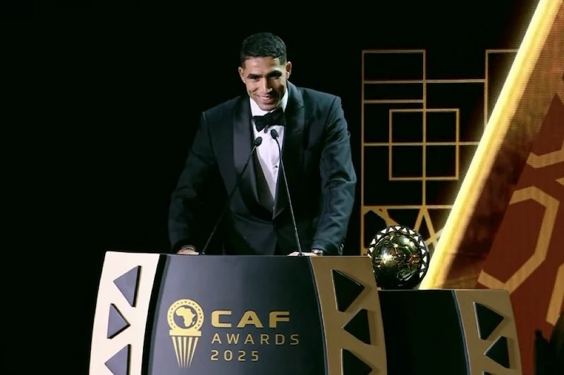 أهدى الدولي المغربي أشرف حكيمي جائزة أفضل لاعب في إفريقيا برسم سنة 2025، التي توج بها مساء اليوم الأربعاء في الرباط ،إلى “كل المغاربة والأفارقة الذين يحلمون بلعب كرة القدم يوما ما”.